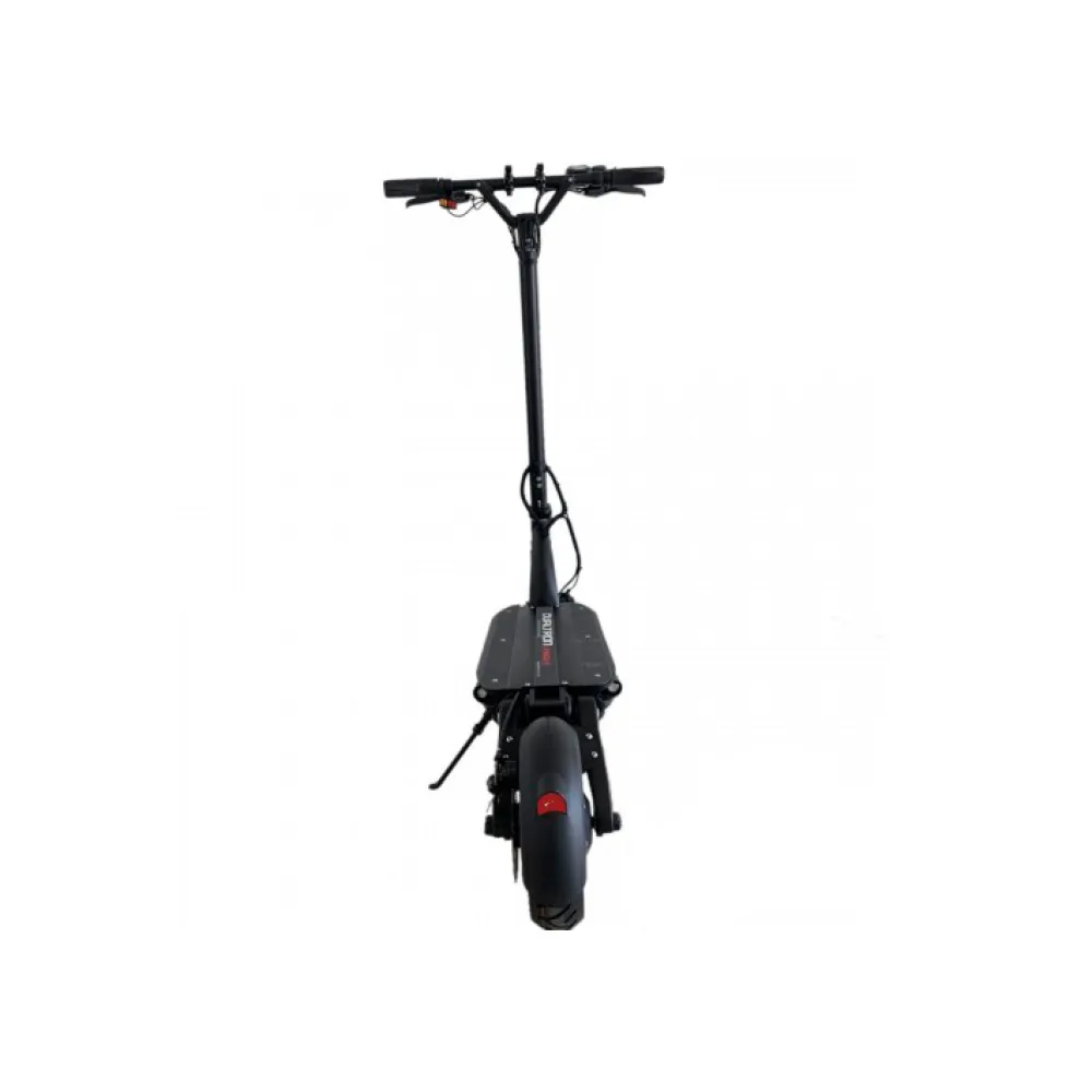 Обратите внимание на дизайн. Он минималистичный, но заметный на фоне других, аналогичный электросамокатов, несмотря на небольшой вес модель способна выдерживать грузоподъемность в 120 кг и преодолевать максимальные расстояния на одной подзарядке со скоростью 75 км/час. Удобная широкая платформа изготовлена из нескользящего брендового материала, на котором изображен логотип компании. Одновременное размещение двух стоп делает езду удобной, исключает риск падения. Колесная часть – небольшая, изготовлена из мало стираемого материала, способна преодолевать небольшие препятствия.