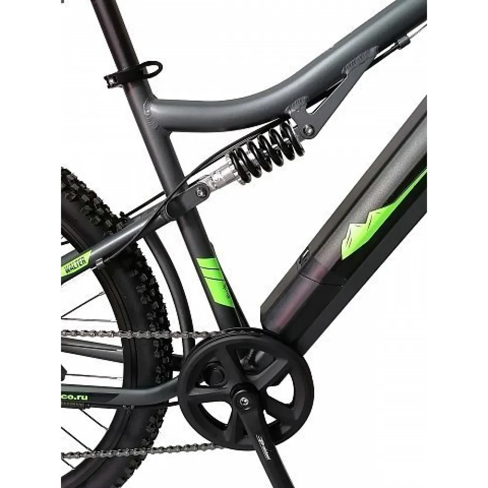 Ещё одна новинка этого года от компании Eltreco – двухподвесный электровелосипед  Walter. Новинка имеет актуальные 27,5-дюймовые колёса, которые позволяют с лёгкостью передвигаться по различным поверхностям, удобно преодолевать неровности рельефа и при этом дают велогибриду максимальную манёвренность. Прочная алюминиевая рама имеет в своей конструкции дополнительный амортизатор для усиления мягкости движения и интегрированную съёмную батарею. Также на велосипеде установлена амортизационная вилка с блокировкой хода для подбора наиболее удобного режима при поездке по разным рельефам. Велогибрид Walter имеет простую, но качественную 7-скоростную трансмиссию и практичные дисковые механические тормоза.