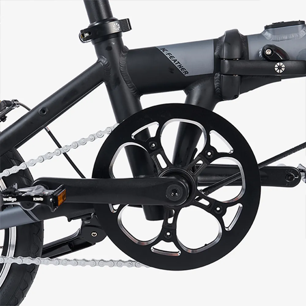 Dahon K-Feather 16" Grey — сверхлёгкий складной электровелосипед весом всего 12 кг с 16-дюймовыми колёсами, предназначенный для компактных городских поездок на расстояния до 40 км на одном заряде.